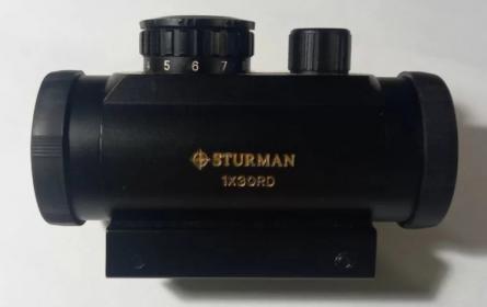 Продам коллиматорный прицел Sturman 1x30RD, в хорошем состоянии, линзы без царапин. Марка Red Dot 1 МОА. На МР-512 с усиленной пружиной марку держит хорошо. Крепление универсальное Вивер/Пикаттини/Ласточкин хвост. Цена 1000 руб.