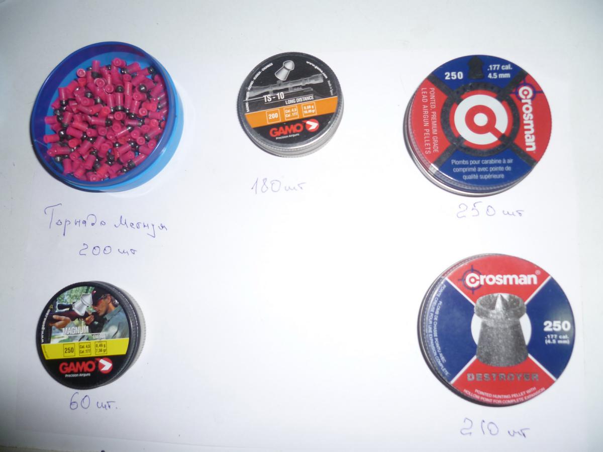 Торнадо-Магнум 4,5мм 0,78 грамм-200шт. Gamo TS-10 long distance 4,5мм 0,68 грамм-180шт. Crosman Destroyer pointed hollow point 4,5мм 0,511 грамм-210шт. Crosman Field Hunting pointed pellet 4,5мм 0,511 грамм-250шт. За все 400 руб. |