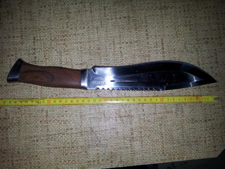 мачете среднего размера из хорошей стали с ножнами, толщина в обухе примерно 5мм