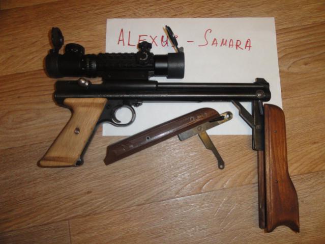 Crosman 1377 с деревянным цевьем, накладками рукояти и прикладом. Стальная ствольная коробка от Гравицапы(покрашена), его-же усиленная ось. Запасной рычаг накачки. Также в комплекте стоковые накладки и цевье. Потроха компрессора родные, без апа. Состояние рабочее, рычаги не убитые