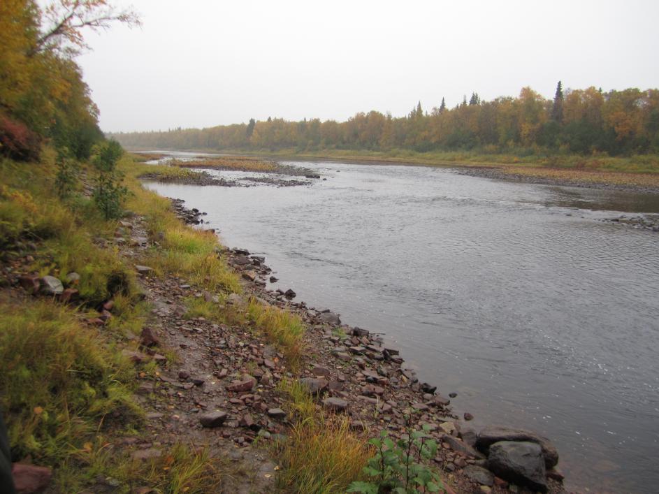 Посетили так-же мекку любителей ловли семги село Варзугу. Точнее соседнее село Кузомень. Само село интересно тем, что стоит полностью на песке. Передвигаются в нем исключительно на полноприводных автомобилях. Попробовали и мы половить семгу, но увы начался сильный дождь и рыбалка превратилась в мучение. Довольствовались только одним пойманным хариусом.