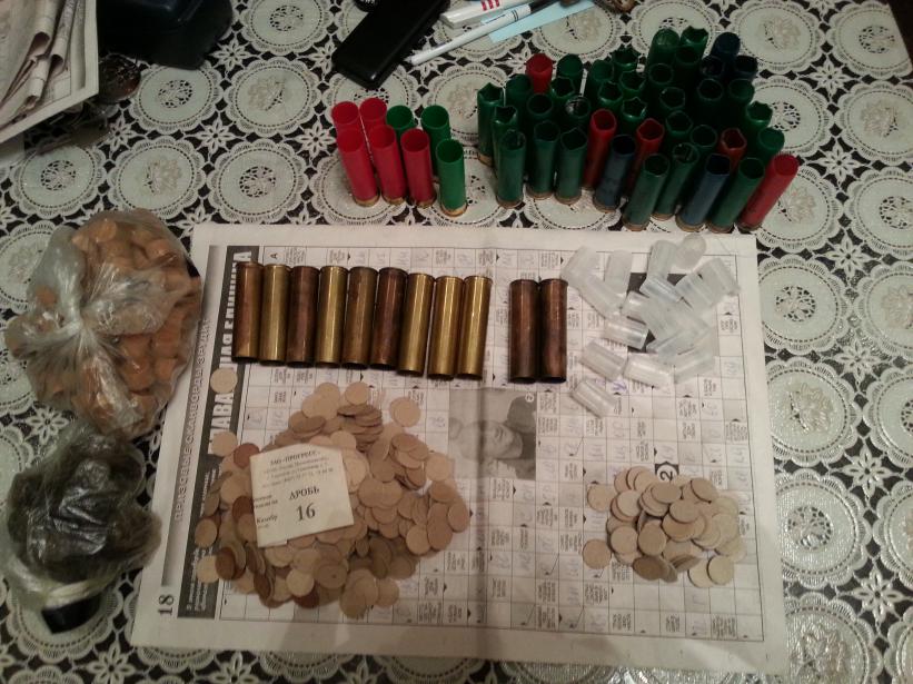 Так же отдельно от ружья отдам патронташ 16к кожа новье - 1000р 11 латуневых гильз половину новые половину раза 4 стрелянные, пластиковые гильзы (есть новые на фото в сторонке стоят есть б/у раза 2/3) все с капсулем кв209, кучу прокладок порох/дробь, ну и пыжи двп штук 60, войлок штук 30, две пули полева (купил на пробу но чет так и не стрелял с него пулей) - пусть будет 400р