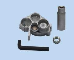 Продаю револьверную головку, предназначена для закрытия дульца гильзы способом "звезда". На одном основании приспособления размещены: матрица со звездой, матрица подрубочная, матрица закрывающая. Положение матриц фиксированное.