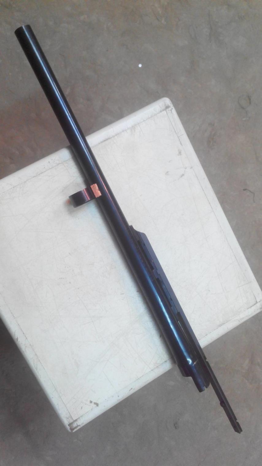 рем870. 2 ствола, у короткого парадокс во весь ствол! и самое редкое чего никогда не видел: прямо на стволе крон под оптику! ласта с пропилами стопорами. 100% оригинал, т.к. все заходы на крон-литье ствола. на учете в Тольятти, ОБА ствола номерные.