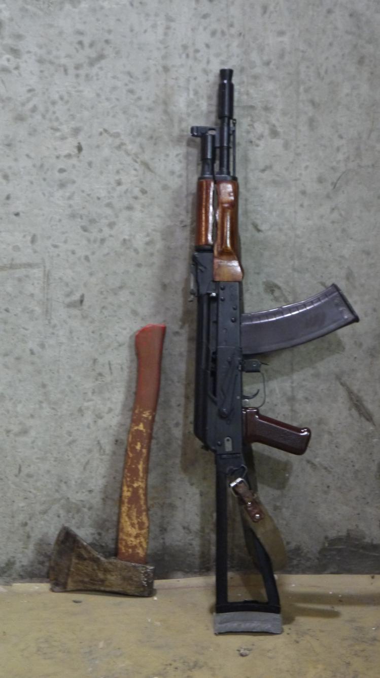 в коплекте сайга, ремень, магазин 410х76 черный, вставка под крепление магазинов ак(лоток не сделал еще), магазин 7,62х39 рыжий, магазин 5,45х39 слива, гильзы короткие под ак магазин уже капсюлированные.