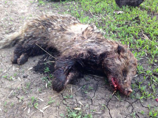 Это чудо залезло в курятник. Хозяин, услышав переполох кур, зашел в сарай и увидел этого зверя. Оно издавало, как тот говорит, визг. Видимо от испуга что ли.