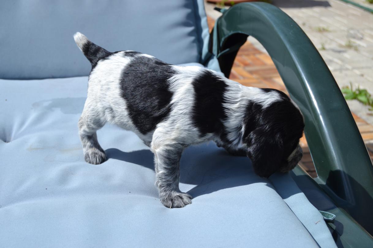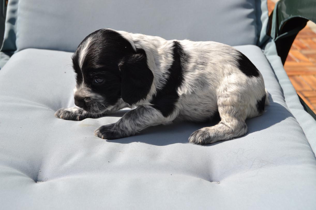 Количество щенков (кобели/суки; с указанием окрасов) — 5 кобелей (черно-пегие)/2 суки (черно-пегие)