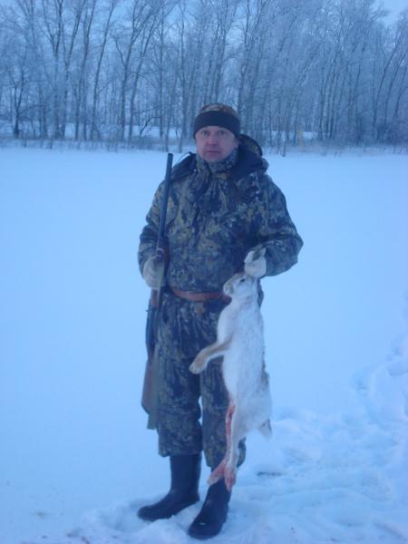 по пути домой с охоты,с трассы заметили след,по трапиле маленько,и друг взял зыйца