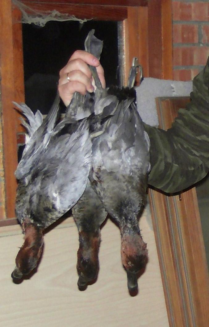 Лёта не было ни вечером, ни утром, два раза стайки по 4-5 шт пролетали стороной. Зато Лысух 14 штук наохотили на двоих. Одну лысуху так замучили на чистой воде, что она устала нырять и мы ее поймали сачком под водой, когда она просто нырнула и сидела на одном месте под водой. Мы ее как подсадную использовали, но это не помогло. Баклана стрелял №5 но он только поменял направление полета. |