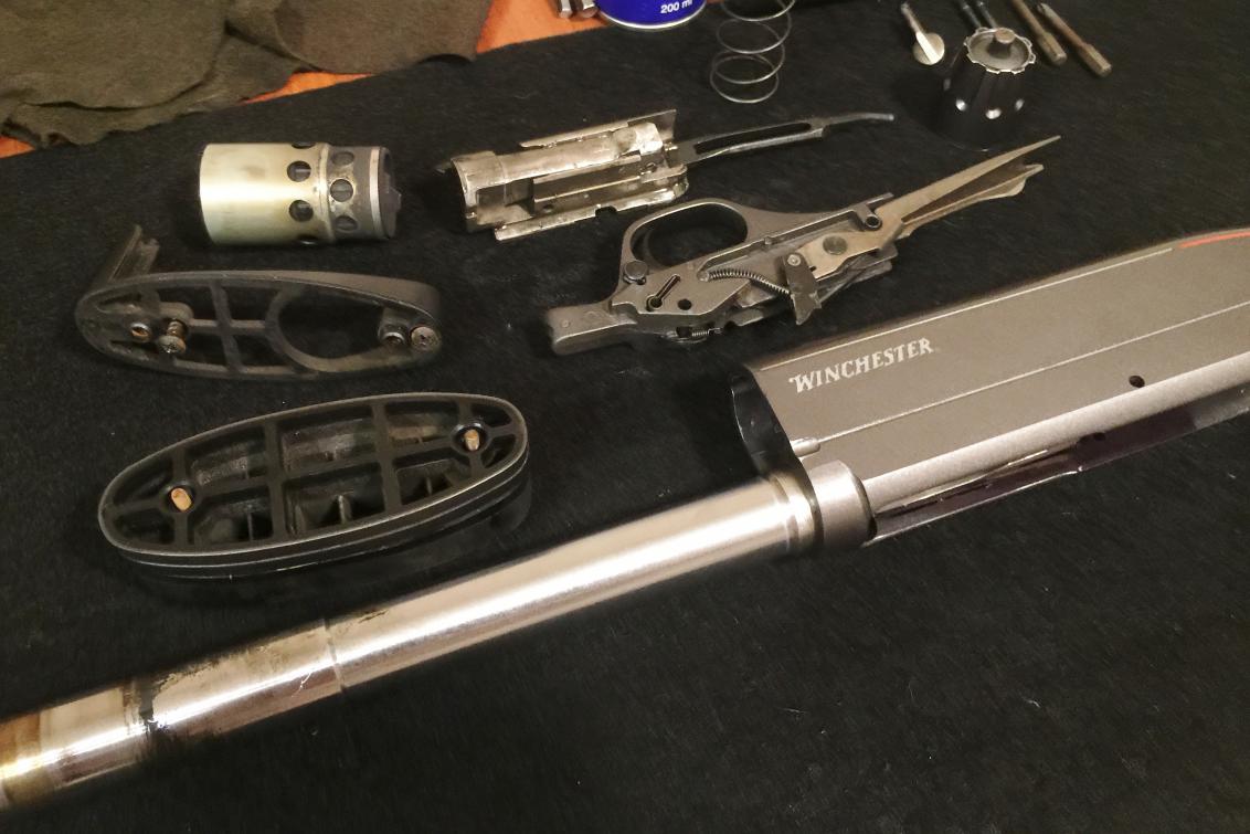 За соревнования было принято 100 мишеней. Выступил с результатом 80 из 100 в группе А. Результат победителя в группе А 92, в группе B 82, в группе С 82. Собственно результатом остался доволен, за турнир не было ни одной проблемы с использованием спортивных патронов СКМ 28грамм. Ни задержек, ни осечек, ни неперезаряда. Стрелять комфортно, отдача приятная, с сужением 0,5 все мишени бились уверенно от самых ближних, до дальних. Единственное было немного неловко перед стрелком справа, так как в момент моего выстрела гильзы летели в него, несколько мешая ему готовиться к предстоящим выстрелам! В целом же, ружьё показало себя отличным вариантом для тех кто хотел бы с одним ружьём и на охоте и умеренно на стенде пострелять! Вложение 19672 проблем с перезарядкой не было, но несмотря на это было решено после вечерки, произвести полную чистку ружья. тем более что полная чистка не проводилась на тот момент уже более года точно. Фото узлов и деталей в процессе чистки ниже... |