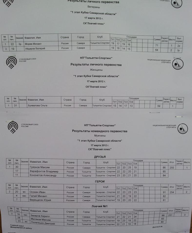 24 марта 2012г. на Лада-Спортинге состоится Турнир среди владельцев многозарядок. Начало в 11-00. Для участия в турнире необходимо зарегистрироваться и пройти инструктаж по ТБ не позднее 10:45. Стоимость участия в турнире 700 рублей. (в стоимость включены тарелки) Найти стенд можно по схеме Предварительная программа турнира: Стреляем две серии на площадке компакт-спортинг по 20 мишеней в серии, на каждом стрелковом месте (их 5) стрелок принимает сразу 4 мишени (первая по команде стрелка, а каждая следующая подается после выстрела по предыдущей). После прохождения площадки, перерыв и второй подход на 20 мишеней. По результатам из 40 выявляется победитель среди охотников участвующих в турнире. Недоколы, неперезарядка оружия – приравниваются к промаху. По окончании турнира и награждения победителей медалями, состоится встреча Самарахантеровцев, посвящённая предстоящему открытию Весенней охоты 2012года. Приветствуется наличие манков на гуся/утку и желание продемонстрировать навыки владения оными... Также по окончании турнира имеется возможность пострелять по заинтересовавшим полётам под опытным взором тренера Кураева В.В. Ориентировочная стоимость тарелки в "вольной стрельбе" 15 рублей, патрона №7,5 28гр - 13 рублей. Возможно использование своих патронов с № не крупнее №7 и навеской до 28 гр, тогда оплачивается только поданная мишень по вышеозвученной цене. з.ы. если остались вопросы - задавайте! Приглашаем, будет интересно... Проверь свой полуавтомат и "глаз" перед весенней охотой :hunter: |