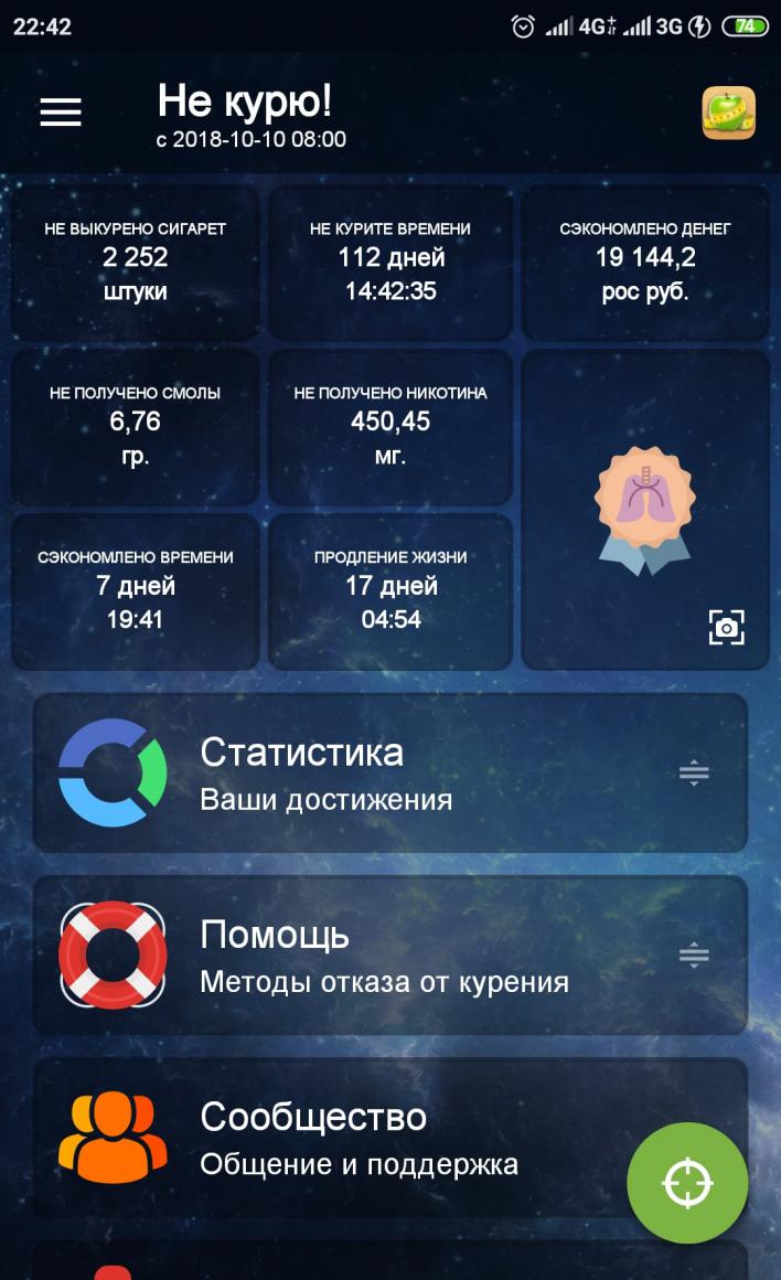 Решил, раз бросил и в честь юбилея (бросил в октябре, в ноябре 35 исполнилось), открою для себя новое хобби - охота (для полноты картины - никогда не интересовался охотой и среди моих знакомых нет охотников, т.е. для меня как на Луну слетать - не известность). Поставил бюджет в 50тр на все про все, и установил программу на телефон, чтобы мониторить сэкономленные на курении и потраченные на охоту деньги, которые, по моим расчетам, должен был отбить к весне. Конечно потратил всё-таки порядком больше, чем изначально планировал. Зато не курю, стою уверенно на лыжах, уже попробовал дикого зайца и сколько ещё всего впереди. Причем тут курение? При том, что раз экономлю, то балую себя вещами, на которые раньше не решился бы, как на не "особо-то и нужно". Скриншот той программки с моей статистикой на сегодняшний день: Вложение 45757 |