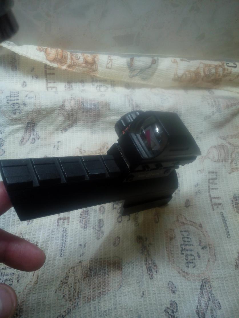 Продам кронштейн с коллиматором к коллиматору ешё крепится ЛЦУ с выносной кнопкой но проводок отпаялся надо припоять(ЛЦУ отдам в подарок). Все стояло на гладком и пристреляно под пули, но т.к. на копыто езжу с карабином сей девайс лежит без дела. У кого нареза нет то штука нужная. На 60 метров мушка закрывает лист А4 полностью, а в калик видно всё, очень удобно именно для стрельбы пулями. Цена видится 3500 руб. т. 8927721072шесть Андрей. Вложение 37895