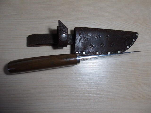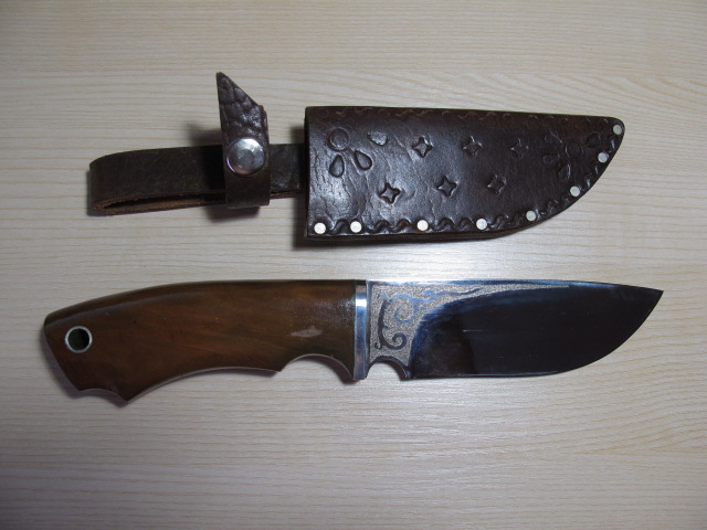 Изготовлен предположительно на зоне. Не использовался. Лежал в загашнике очень давно, история его мне неизвестна. Подарили. По стали ничего не скажу. Общая длина 26 см. Длина лезвия 15 см. Длина режущей кромки 12, 5 см. Ширина обуха 2,6 см. Толщина обуха 2,9 мм. Материал рукоятки - дерево покрытое лаком. Вот так вот. По лезвию гравировка - произвольный рисунок. Кожаные ножны черного цвета. Вложение 9152 Вложение 9153 2. Нож №2. Так же подарен очень давно. Лежит без дела. Новый. Производство скорее всего то же. Так что сталь не известна. Общая длина 27 см. Длина лезвия 14 см. Длина режущей кромки 12 см. Ширина обуха 4,25 см. Толщина обуха у основания 4,5 мм. Материал рукоятки - дерево. По части лезвия рисунок - травление. Кожаные ножны коричневого цвета. Вложение 9154 Вложение 9155 3. Точилка Lansky-UNIVERSAL. Использовал пару раз. Состояние близкое к идеальному. Четыре точильных камня. Полный комплект. Вложение 9156 Ножи по 1,5 тыс. рублей. Точилка 2 тыс. бублей. Оптом дешевле. |