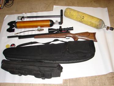 Этот комплект даже новый стока не стоил Балоны списаный хлам, стеклу дырку в бок, стальному 2500 красная цена. Насос смотреть Прицел хз какой вообще Но помоему эту винтовку судя по комплекту я знаю, делал ее, она года 2005 выпуска. Хотя могу и ошибаться |