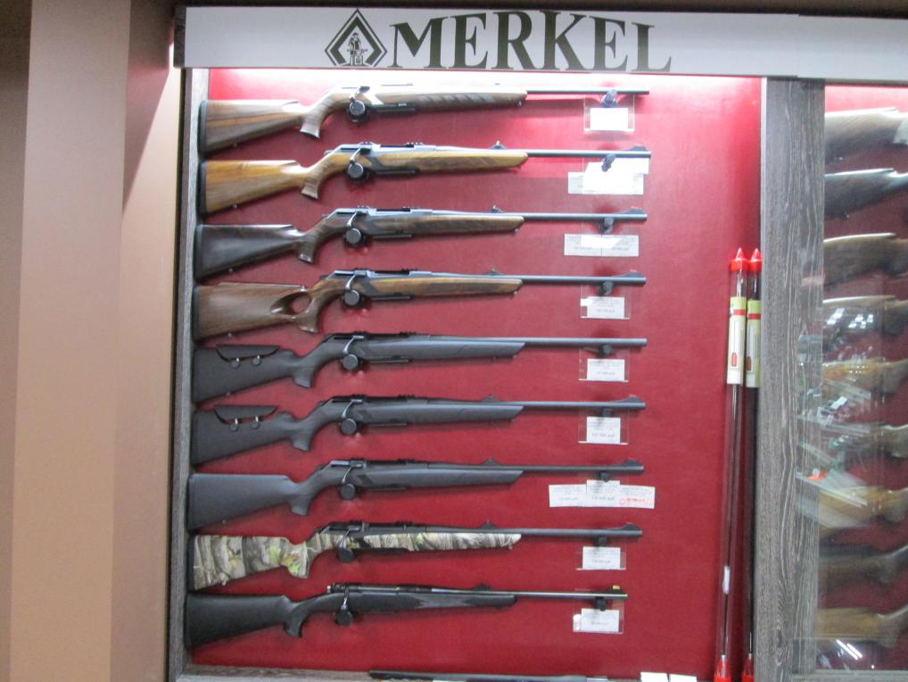 Также в наличии: бюджетные полуавтоматы Merkel SR1 и SR1 Basic (в различных калибрах), штуцера Merkel B3, тройники Merkel 96K, классические двухстволки (Merkel 65E, 40E, 2001C)