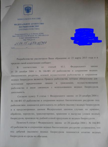Цитата: получил ответ из Росрыболовства, вердикт: