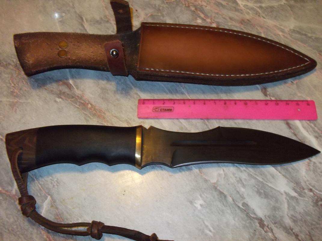 1.Предлагаю вашему вниманию вариант боевого ножа «Каратель» в исполнении без гарды с клинком из кованой углеродистой пружинно- рессорной стали 65Г. Подобные ножи "Каратель" и "Взмах" используются спецподразделениями МВД и ФСБ для работы в тяжелых условиях. Антибликовое покрытие клинка (оксидирование), заточка низ и верхняя передняя часть. Сталь 65Г применяется для изготовления пружин, рессор, корпусов подшипников и обладает достаточно высокой жесткостью и способностью долго сохранять заточку. Исполнение рукояти - комбинация черного граба, гарда латунь. Соединение клинка и рукояти- шпилька диаметром 8 мм до конца рукояти. Этот нож является сделанным вручную высококачественным изделием, которое может украсить любую коллекцию, и может использоваться для охоты, туризма, рыбалки, походов по местам сражений! Made in VORSMA. Не стоит сравнивать этот качественный нож с китайскими «аналогами» из чугуна, покрытыми укрепляющим напылением! Цена пусть-4.500 руб.