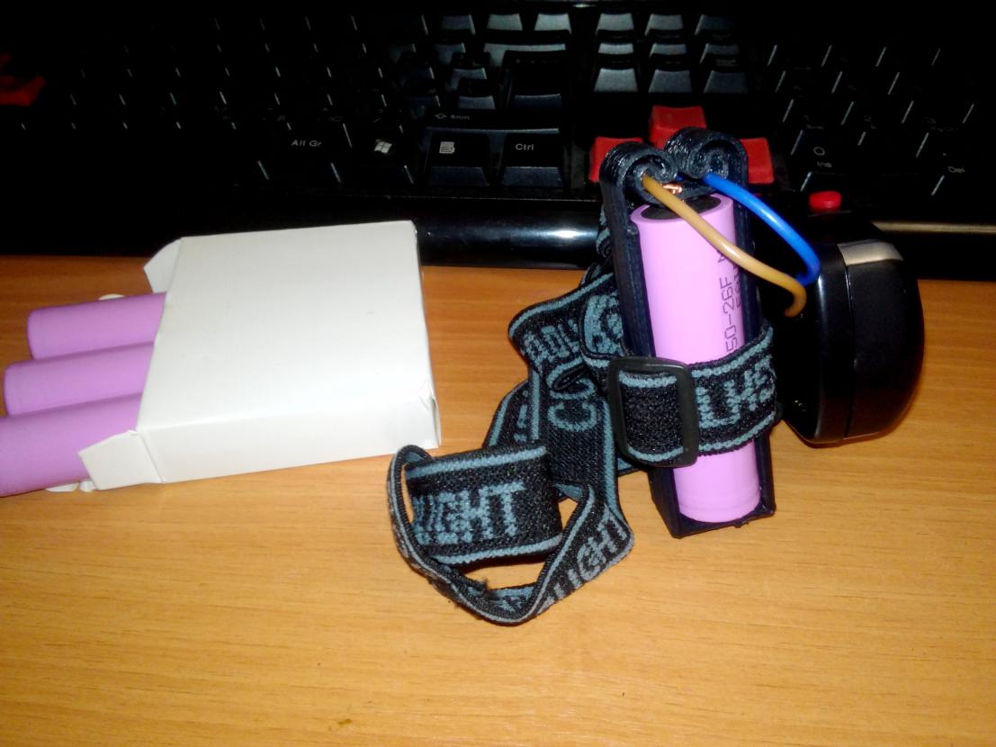 Сделал футляр для аккумуляторной батарейки 18650 для налобного фонарика, за место имеющихся 3-х батареек ААА, светит также ярко, но дольше и заряжать можно.