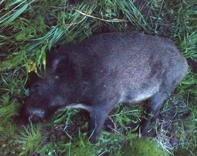 Тоже в будний день выехали с форумчанами на кабана. Рассказывать особо нечего, все четверо видели зверя, двое стреляли. Фото с ними выкидывать не буду, выложу только свои...))) Сел на вышку в 18-30, температура +33, жарко очень. Вышка на краю поля с овсом. Выходов, следов полно - козликов, кабанов и даже лосей. Чай сижу пью, жду солнышко когда сядет... Егерь уехал товарищей расставлять и через 10 минут козочка скачет. Поснимал ее (не умею пока видео вытащить с прицела). Коз за час видел голов 10, самки. В 20-00 вышел кабанчик прошлогодок. Метров 90-100. Поснимал, успокоился и выстрелил в лопатку. Лег на месте, калибр .308, патроны SB (11,7 г.). Еще светло, сходил сфоткал и сел на вышку ждать товарищей и любоваться красотами соседней области. В 00-00 товарищей все нет, связи тоже нет, сижу жду, мерзну. Хорошо все с собой взял, оделся, попиваю чаек, козлов слушаю, гавкают и тут и там. В 00-15 прогремел выстрел товарища, ну думаю, теперь то все, не едут... Вспомнил про тройной режим фонаря на прицеле, дай думаю посвечу погляжу подальше. Осветил все поле, оп - глазки и черный силуэт, метров 150-160... Кабанчик. Бумаги есть, стрелять не перестрелять, выстрел мой, да товарища, значит можно еще одного. Принимаю решение стрелять. Далековато. Поросенок вышел из-за дерева на поле чуть почище, ест, расстояние тоже, поднял голову - стреляю по лопатке - засветка и не видно ни чего. Сиплый стон в секунду и тишина. Товарищи приехали через 40 минут. Второго кабана, нашли с тепликом уже, от места стрела в пяти метрах на границе поле - лес, пуля та же, без поправок, точно в лопатке. Секач хороший. Ну а потом была долгая разделка и длительная поездка домой, а надо на работу... В общем чудно время провели!))