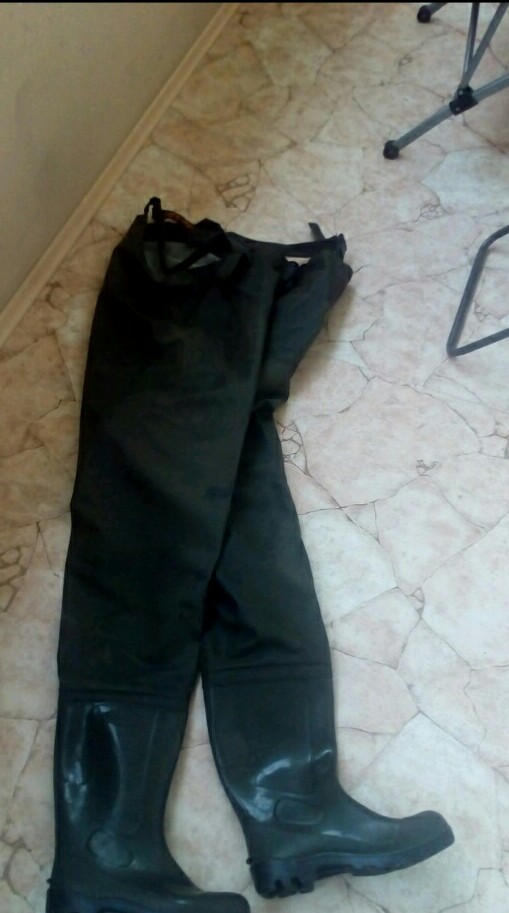 1. Вейдерсы. Низ жесткая резина, верх ПВХ. размер 43-1800р