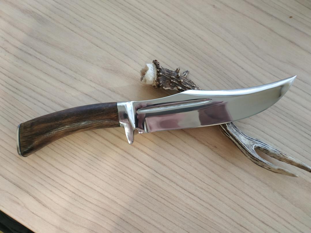 Продан.Нож изготовлен из тепловозного клапана.Следы ковки присутствуют.Общая длина 30 см,длина клинка 18 см,толщина в обухе 5мм.Монтаж сквозной.Сталь лютая,хоть по костям,хоть по гвоздям.В комплекте кожанные ножны.Цена 2900р.т.8902375ноль ноль 91