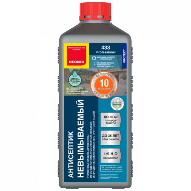 NEOMID Антисептик Невымываемый Усиленный – консервирующий невымываемый антисептик нового поколения для эффективной долговременной защиты различных пород древесины в тяжелых условиях эксплуатации, в том числе при длительном контакте с грунтом и влагой. Материал может подвергаться не только контакту с почвой, но и воздействию грунтовых солей, а также атмосферных осадков. Это средство защиты древесины от влаги и гниения может быть нанесено на стропильные системы, заборы и изгороди, а также элементы конструкций, которые подвергаются сложным атмосферным условиям и низким температурам. Описываемая пропитка является радикальной. Она подходит для сложных эксплуатационных условий.
