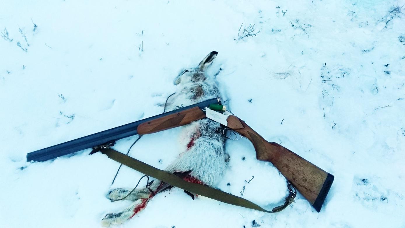 Во время осмотра лисьей ноши, тут же приметил свежайший заячий следок ведущий из ближайшей посадки в овражек с тальником. Проследовал по маршруту метров 150 до овражка, ни сдвоек, ни скидок, чуть крутанулся косой на обрывчике и скатился под куст тальника. Стою жду....не спускаюсь, пару минут и заячья душа не выдержала, слышу стартанул, затем замечаю, бью первым метров 20 через ветки, вижу попал, но бежит, вторым метров 30 опять попал, побежал тише не галопом, но убёг. Иду смотрю, задняя левая лапа культя, и кровит, ну думаю мой, щас доберу, метров через 300, ха и как же я был не прав.