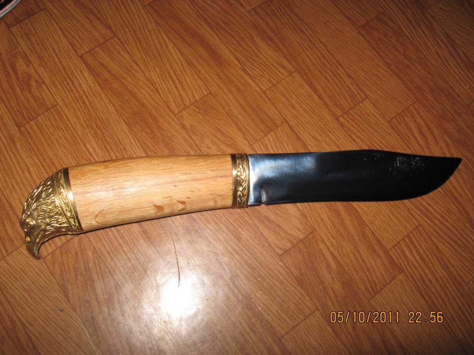 Производство Россия, город Вача нижегородской обл. Завод "Труд". Материал: нержавеющая сталь, ручка орех, на окончании рукояти имеется литье в виде головы орла, все остальное на фото. Привозил человеку на заказ, тот передумал брать. Цена вопроса 1,5 т.р. Возможен не большой торг.