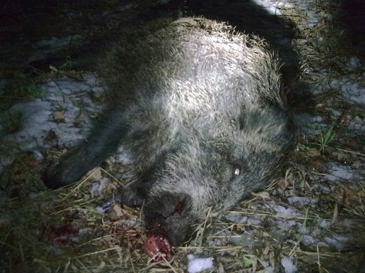 Вчера на вышку приехал в 16:40, ровно в 18.05 вышло стадо - голов 10, подошли к вышке на 15-20 метров, картечь 8.5, вес примерно 55 кг: