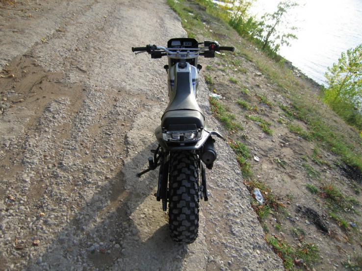 Подготовлен к сезону. Цепь с сальниками (хватает на 20 т.км.), новые звезды (ведомая тяговая на 50 зуб вместо стандартной на 45). Вилка прокачана, сальники поменяны, масло в ней 15w. Масло в моторе и фильтр новые. Клапана отрегулированы. Из вложений (больше тюнинг) можно установить задние поворотники и зеркала, но выкинуть их в лесу, т.к. они отломятся после первого падения.