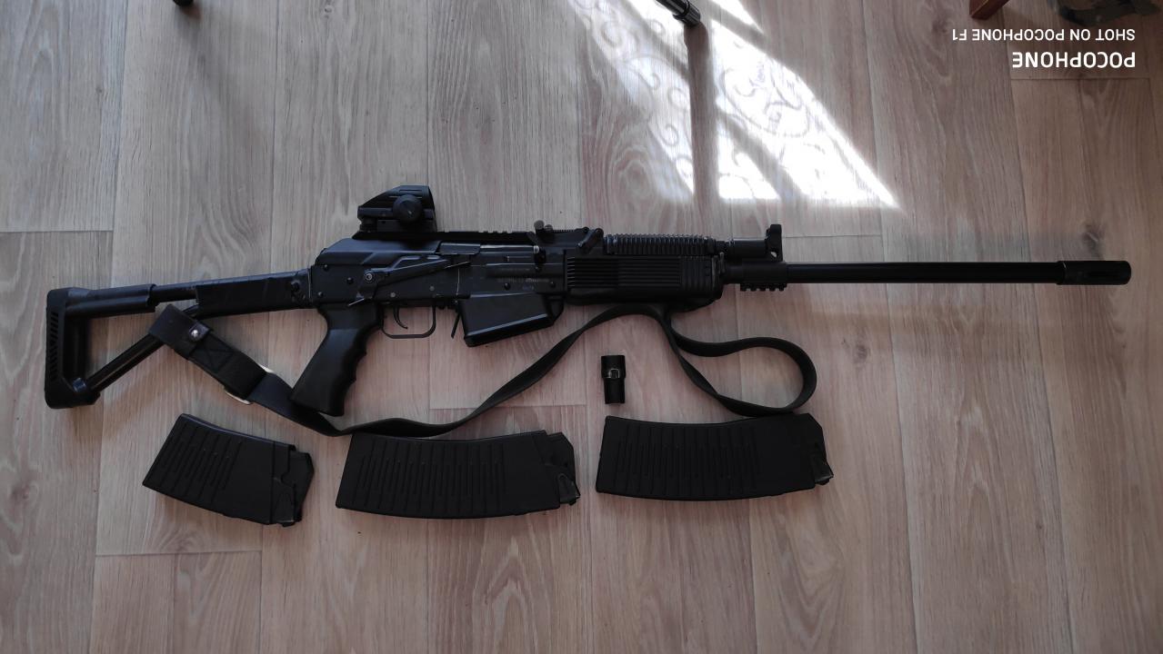 продам вепрь молот 12 калибр впо 205 исполнение 01 ствол 57см, чехол, семный пламегаситель, сужение накручивается на ствол чок 0,75 спец заказ предыдущего владельца я второй , пуха 14 года , 2 магазина на 8 и один на 4 патрона, стоит коллиматор китай но держится хорошо. 89991701189андрей