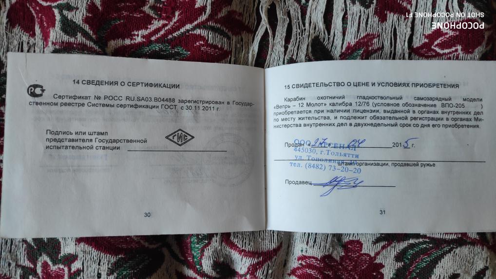 По умолчанию продам Карабин Молот Вепрь 12*76 ВПО 205-01