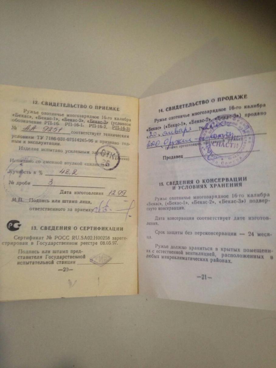 У супруги на работе женщина продает в связи с заканчивающимся разрешением ружбайку Бекас-3 16 калибра РП-16-3