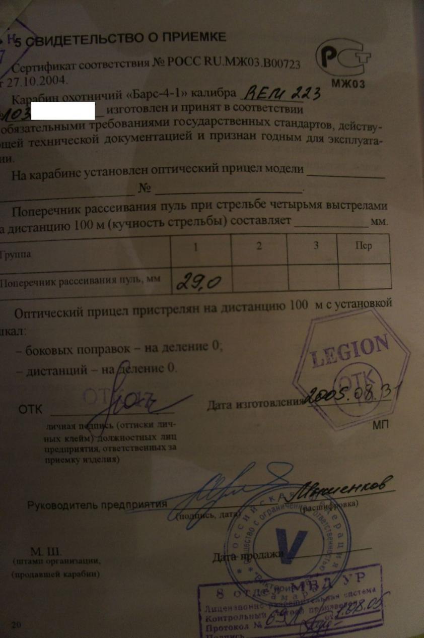 Барс-4-1 калибр 223rem в исполнении ООО"легион" 2005 г.в.