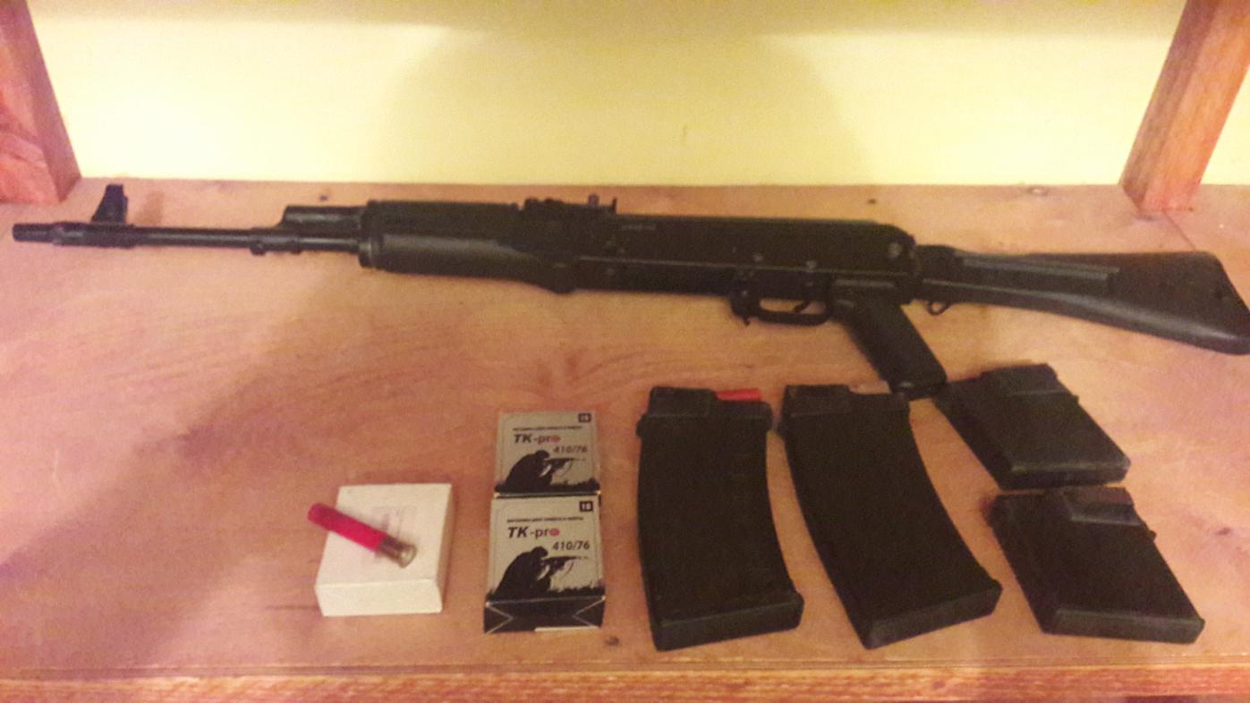 Итак Сайга 410к01, с 5 магазинами. Настрел 3 магазина по 10 патрон. Только пристрелял на 50 м.