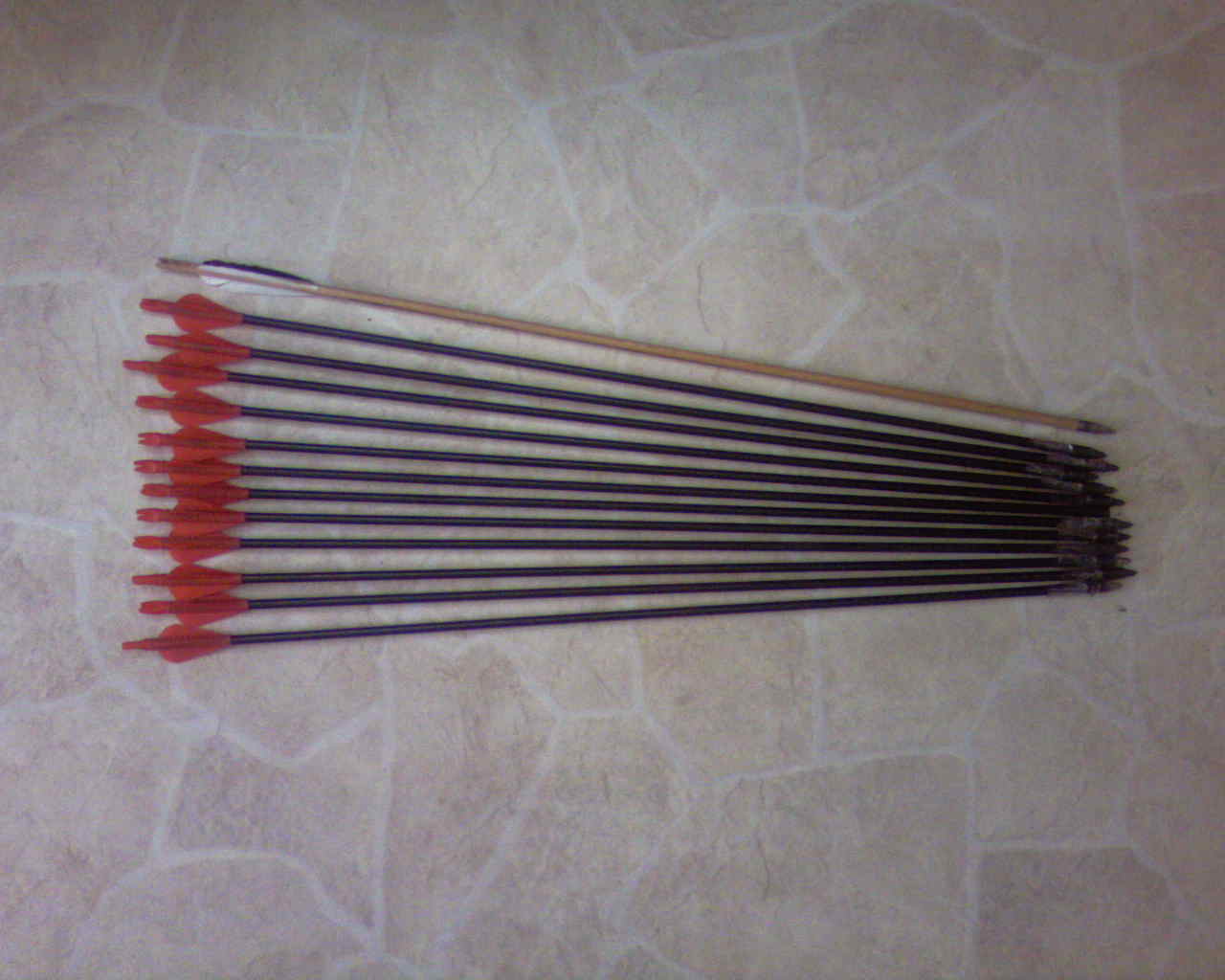 длина 153 см. в комплект до кучи отдам 12 карбоновых (так было написано на ценнике) и скрепя сердцем 3 буковых стрелы ручной работы. тетива фактурная. усилие 12-18. точнее не замерял да и оно меняется в зависимости от того какой длины стрела и длина тетивы. 5 тыр. торговаться не буду цена итак демократичная.