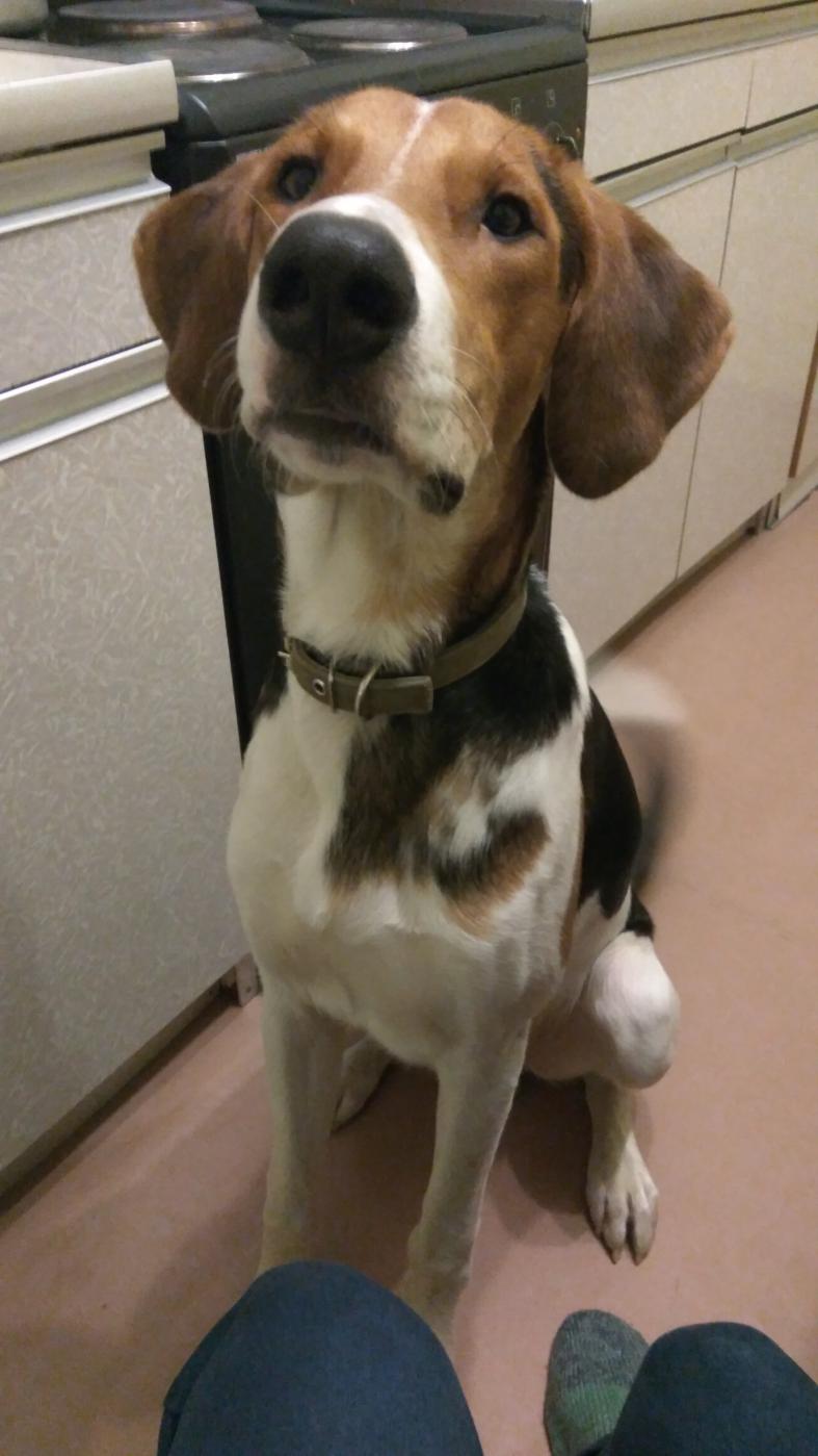 Знакомый отдает метиса гончей в добрые руки в связи с состоянием здоровья. 20.02 исполнится год. Ходили на занятия с кинологом дома команды выполняет, на на улице весь в поиске. Активно уменьшает популяцию мышей в лесу. Но какой охотник из него не знаю. В квартире мебель не грызет но переживаем за состояние дачи(все перекопает как трактор).