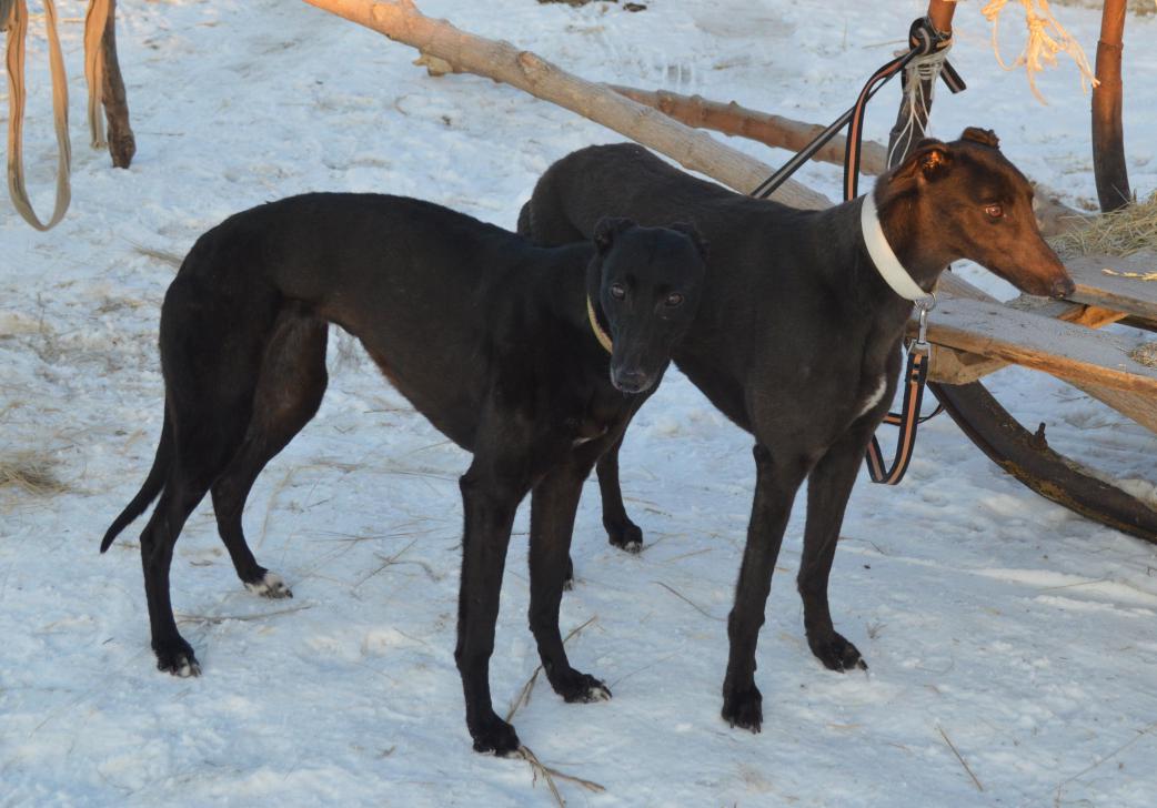 Собаки были привезены весной из Палласовки в возрасте 4-х и 2-х лет. Действительно это первые грейхаунды зарегистрированные в Самарском обществе охотников. Папа обеих лучший кобель последних лет на собачьих бегах на Ростовском ипподроме-Уот Э Торнадо,вывезен из Ирландии,поэтому собаки этой линии неплохо переносят наши зимы