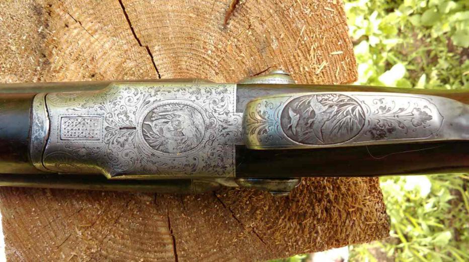 Да, гравировка красивая. По клеймам чет ничего не понятно, половина читаеться плохо. Мужик с дубиной, это хорошо. Ружье действительно выше среднего. По поводу сужений в 1, 25 бывших, очень сомневаюсь, все таки 16 калибр и 1 мм уже круто. Клеймо стали прочесть не смог, но это Крупп из Эссена, три кольца, в общем должен нитропорох переваривать, по времени изготовления, то же уже все стволы шли под нитропороха. Большая корона, клеймо, но буковки N не видно. Могу ошибаться, все имхо. Ружье уставшее, цену обсуждать не буду. Удачи в продаже