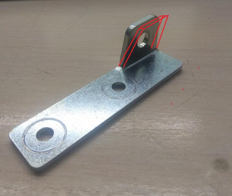 Сейчас например нужно подогнуть пару кронштейнов, но в домашних условиях это дохлый номер, нужны хотябы хорошие тиски и горелка или еще ченть. Вот как на фото, нужно подогнуть "ухо" градусов на 20-30 внутрь, толщина металла порядка 3мм, наверное лучше подогреть, есть опасность что изгиб пойдет по отверстию если просто молотком в тисках, что очень на желательно