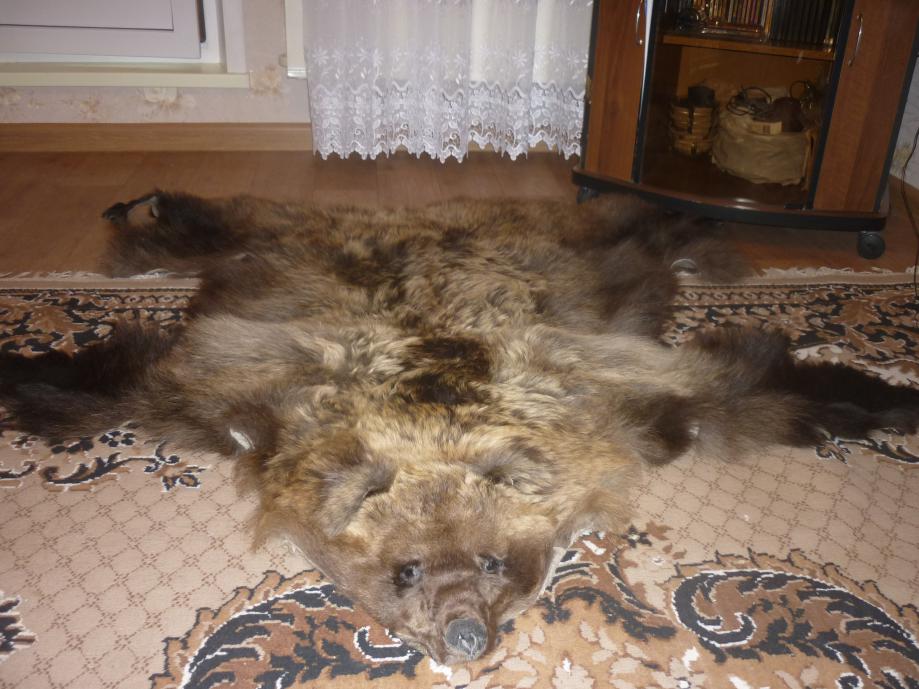 Медведица бурая, выделка ноябрь 2012 года, в отличном состоянии, длина 145 см, по передним лапам-165 см. Отличный мех. Возможен торг.