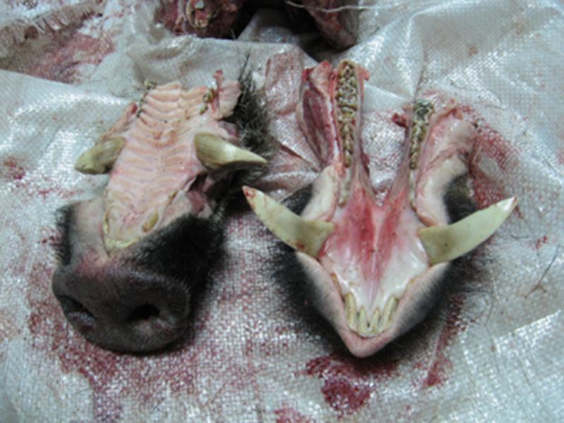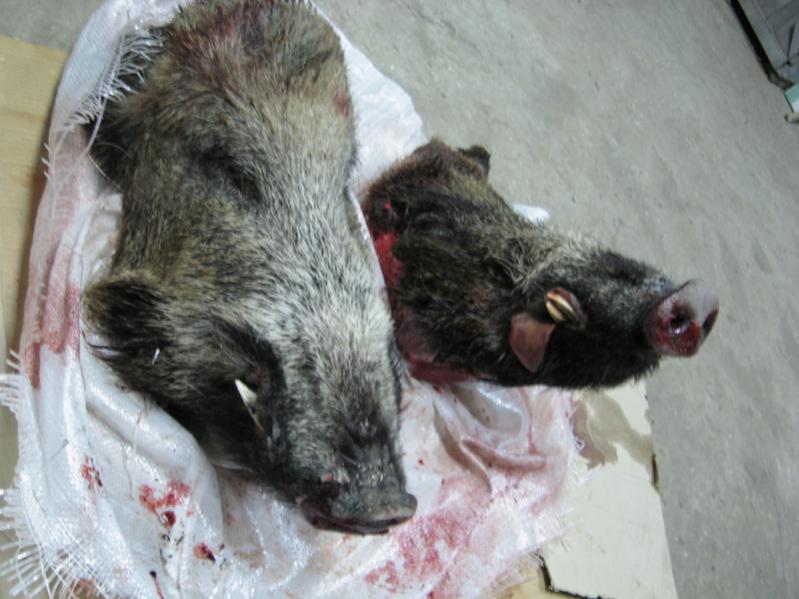 - Хочу порекомендовать начинающим охотникам "трофейщикам", как лучше !! Не буду говорить ((правильнее)) правильно у всех по разному, срубать клыки... -голову переворачиваем, извлекаем язык -вставляем палку между нижней и верхней челюстью, чтобы при рубке зубы не сломались друг о друга. -начинаем с нижних клыков, срубаем нижнюю челюсть, отделяем -подставляем что то, под верхнюю челюсть и рубим краем топора (верхняя часть - хрящ) -срезаем лишнюю мякоть. |
