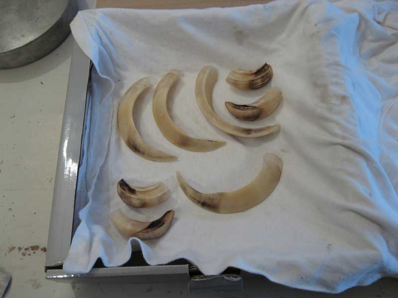 -- Продолжаем заниматься с нашими двумя комплектами клыков. Высушиваем в прохладном месте обычно 2 дня, но на первый день нужно смотреть, чтобы не пересушить (начнет отлетать эмаль )