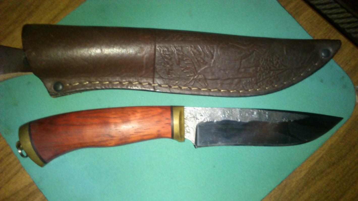 Зимой у Кирилла на охоте зайца разделывал,рубил на пеньке,гвоздик попался,гвоздик пополам.Заточил заново,фотки старые просто.А вообще я не говорил,что на полке хранил.