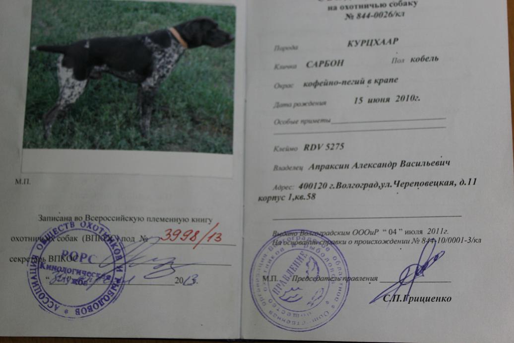 Отец: Сарбон 15.06.2010г.р. , ВПКОС 3998/13. РКФ 2743905 вл. Апраксин А.В.