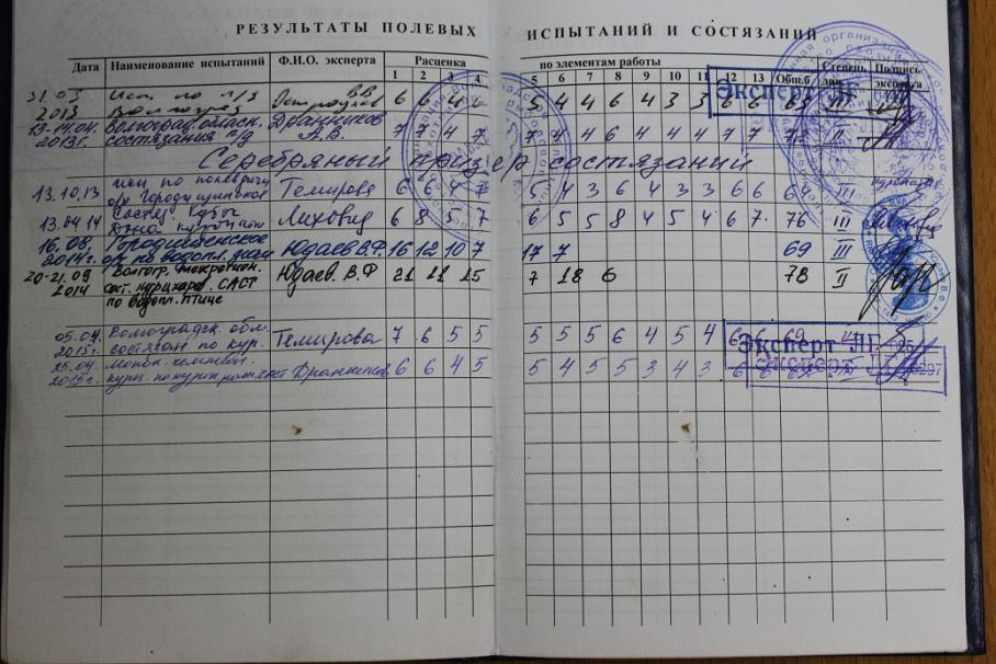 Титулы: Серебренный призёр на Волгоградских состязаниях пополевой дичи 13-14 апреля 2013г