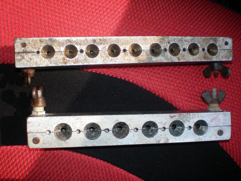 заливные отверстия рассверлены для удобства заливки. Лейка разогревается сначала,а потом уже заливается в нее свинец.Отличная пуля получается главное чтоб руки не тряслись)))