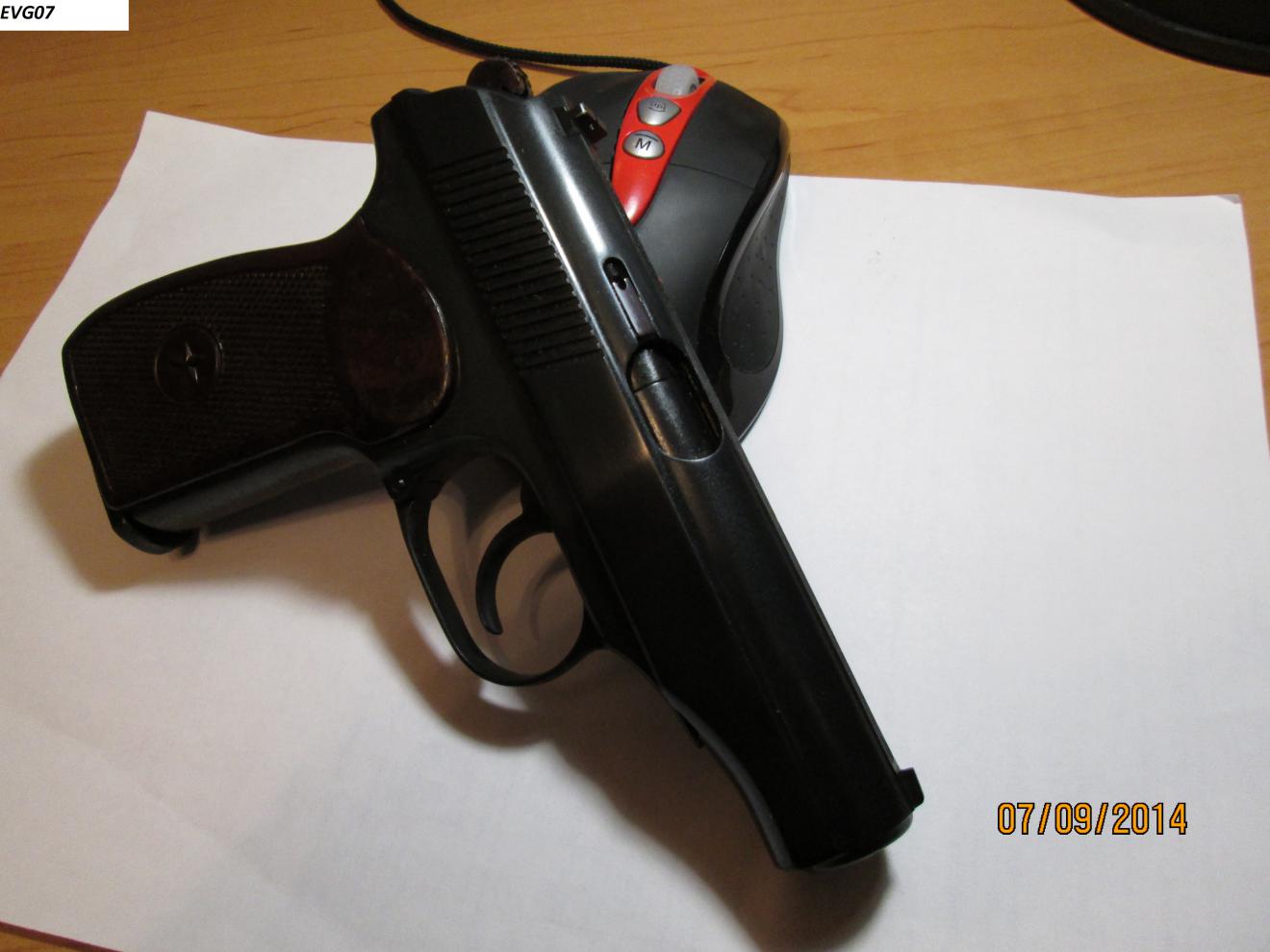 Произведена шлифовка, заводской шершавой поверхности больше нет. Заново оксидирован, вклеен имитатор выбрасывателя, установлен штифт под стволом. Расточен клапан и обтюратор, установлен длинный боёк, установлена гнутая скоба боевой пружины ПМ, магазин под скобу переделан. Спусковой крючок переточен, гайка ствола круглая. В комплекте паспорт с отвёрткой, стандартный ново дельный винт боевой пружины, стандартный короткий боёк. Дополнительно отдам гладкий ствол, замена производится проще чем в стандартном варианте, так как пружину спусковой скобы держит штифт что установлен под стволом. ППШ-М цена 13.000 С аппаратом ни чего ни делал, ни разу ни стрелял. Брал в качестве стреляющего макета. В комплекте паспорт, маслёнка, второй приклад. 6П42-7,62 газовый цена 4.500 есть шум и газ пат, по договорённости. Оформляется на лицензию. Тел. 892789900 семь шесть |