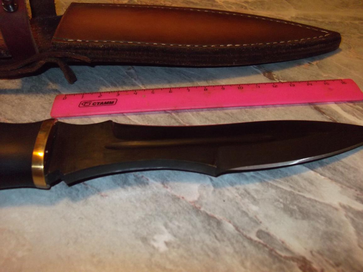 1.Предлагаю вашему вниманию вариант боевого ножа «Каратель» в исполнении без гарды с клинком из кованой углеродистой пружинно- рессорной стали 65Г. Подобные ножи "Каратель" и "Взмах" используются спецподразделениями МВД и ФСБ для работы в тяжелых условиях. Антибликовое покрытие клинка (оксидирование), заточка низ и верхняя передняя часть. Сталь 65Г применяется для изготовления пружин, рессор, корпусов подшипников и обладает достаточно высокой жесткостью и способностью долго сохранять заточку. Исполнение рукояти - комбинация черного граба, гарда латунь. Соединение клинка и рукояти- шпилька диаметром 8 мм до конца рукояти. Этот нож является сделанным вручную высококачественным изделием, которое может украсить любую коллекцию, и может использоваться для охоты, туризма, рыбалки, походов по местам сражений! Made in VORSMA. Не стоит сравнивать этот качественный нож с китайскими «аналогами» из чугуна, покрытыми укрепляющим напылением! Цена пусть-4.500 руб. Характеристики ножа: Сталь пружинно-рессорная 65Г. Общая длина 289 мм Длина клинка 165 мм Ширина клинка 35 мм Толщина клинка 5,8 мм Твердость клинка (HRC) 60-61 ед. Рукоять: латунь, черный граб. Ножны от мастерской "Романа Серкова" 2.Охотничий нож «Шерхан» дамаск. Ручная работа! Черный граб, латунь, герб РФ! Новый охотничий нож «Шерхан» с клинком из кованой дамасской стали.Дамаск имеет великолепные режущие свойства. Рисунок дамаска – «крученый». Кузнец Новоселов. На клинке имеется клеймо. Элементы рукояти выполнены методом литья из латуни, задняя часть - герб России, дерево- черный граб. Соединение клинка и рукояти – шпилька диаметром 8 мм до конца рукояти. Сделано в г. Ворсма, полностью ручная ковка и работа. Ножны из натуральной кожи с тиснением в комплекте.Цена пусть-4.000 руб. Характеристики ножа: Сталь дамасская, пакет ШХ15+ХВГ+У8. Общая длина 270 мм Длина клинка 148 мм Ширина клинка 35 мм Толщина клинка 3,4 мм Твердость клинка (HRC) 59-60 ед. Рукоять: литье латунь, черный граб. Прошу звонить по тел.+семь 927 205 шесть 118 Сергей. Если не беру или сбрасываю-перезвоню сам (не всегда есть возможность разговаривать). Спасибо за понимание. На форуме после 20-00.Но лучше звоните.